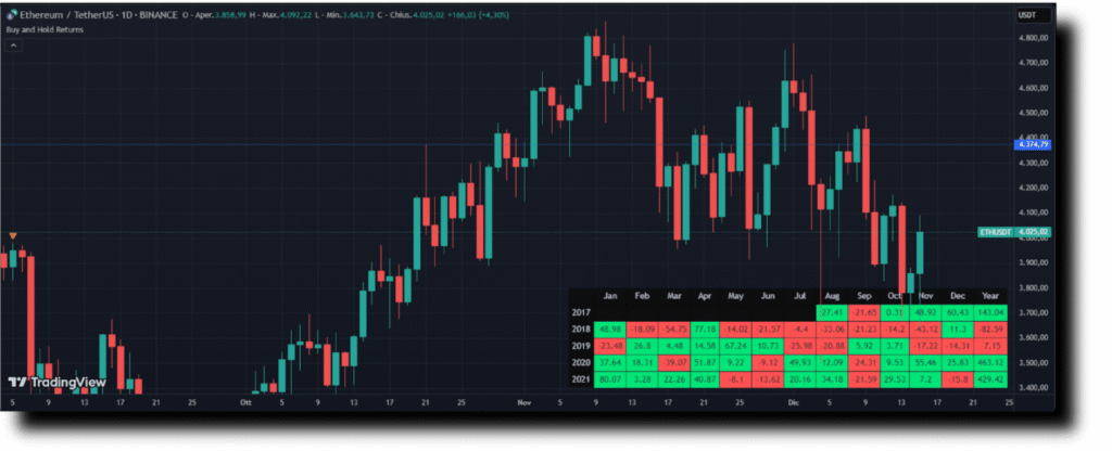 Simula una strategia di Buy & Hold (compra e mantieni) partendo da un capitale iniziale e calcola i rendimenti mensili e annuali, mostrandoli in una tabella direttamente sul grafico di TradingView.