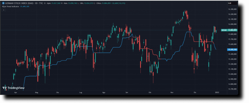 Il Kijun Signal PRO è uno strumento di analisi di trend utilizzabile su tutti i timeframe. Aiuta a identificare i momenti migliori per entrare in posizione short (linea rossa) o long (linea blu) in mercati con trend definiti. Si basa sull’idea originale di Larry Williams che utilizza una media mobile semplice a 18 periodi, reinterpretata con l’uso del Kijun a 26 periodi dell’Ichimoku o, in alternativa, una media mobile esponenziale (EMA) per maggiore flessibilità.