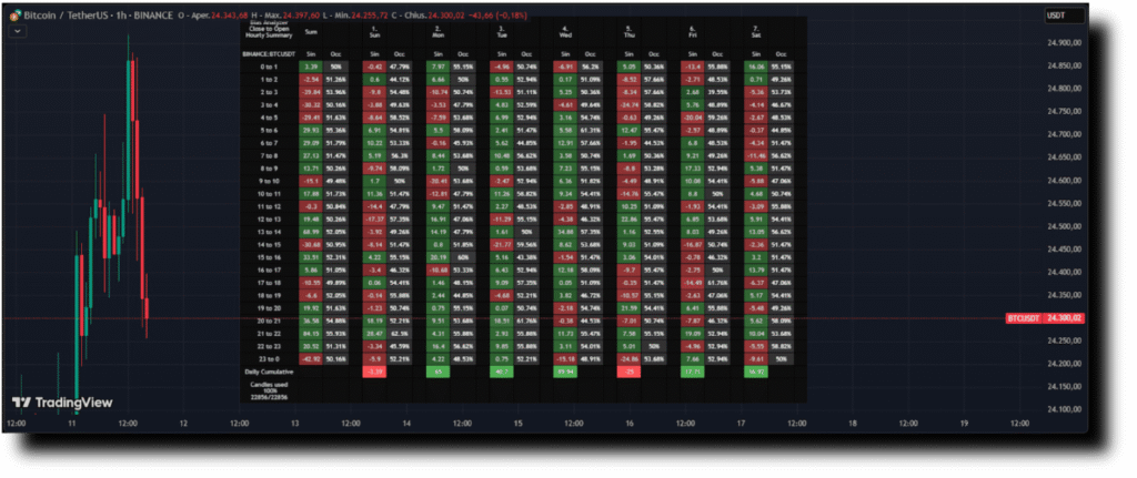 Il Bias Explorer è uno strumento di analisi di mercato (timeframe 1H o 1D) progettato per individuare tendenze ricorrenti del prezzo in specifici momenti, sfruttando inefficienze di mercato. Può analizzare: